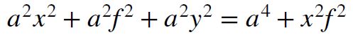 Ponendo poi a2-f2=b2, (possibile perchè a>f) e dividendo entrambi i membri per a2b2 si ottiene l’equazione cercata dell’ellisse