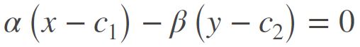 L’equazione rappresenta un'iperbole il cui centro di simmetria è il punto C soluzione del sistema precedente. Gli assi di simmetria dell'iperbole sono due rette passanti per C e hanno equazione: